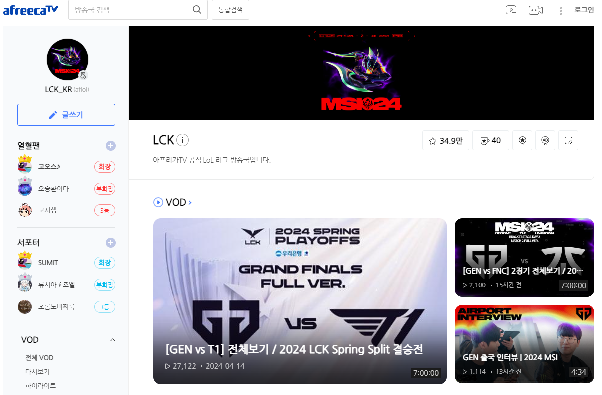 3. 유튜브 LCK 채널