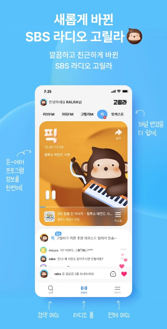 ✅ SBS 고릴라는 SBS라디오 어플입니다. 파워FM, 러브FM, 24시간 음악전문 채널 고릴라M 등을 바로 청취할 수 있습니다.